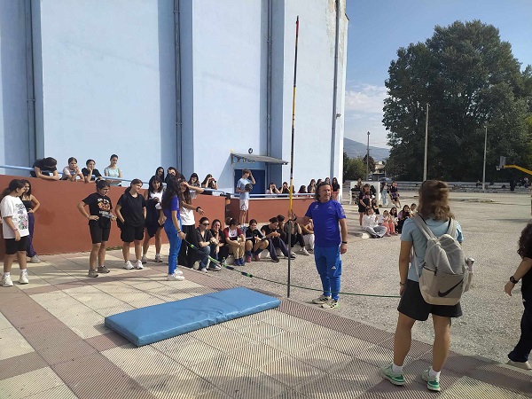 Η επόμενη δράση, που είχε ως εμπνευστή της την διευθύντρια του σχολείου μας, την κ. Χρυσάνθη Παλάζη, , ενθουσίασε τα παιδιά, διότι μας επισκέφτηκαν και μας μίλησαν για το επι κοντώ αλλά και για τις εμπειρίες τους, ο προπονητής του επι κοντώ, κ. Σάββας Κεφαλίδης και η αθλήτριά του, Πρωταθλήτρια στο Ευρωπαϊκό Πρωτάθλημα Στίβου Κ18 κ. Ηλιάνα Τριανταφύλλου. Αυτό που κυρίως η Ηλιάνα ήθελε να τονίσει στα παιδιά του σχολείου μας, ήταν ότι μπορούν να πραγματοποιήσουν ότι στόχο βάλουν, αρκεί να προσπαθήσουν. Ακολούθησε στη αυλή του σχολείου μας, βιωματική προσέγγιση του αθλήματος του επι κοντώ, από τους μαθητές μας, με τη συνδρομή βέβαια του κ. Κεφαλιδη και της κ. Τριανταφύλλου.