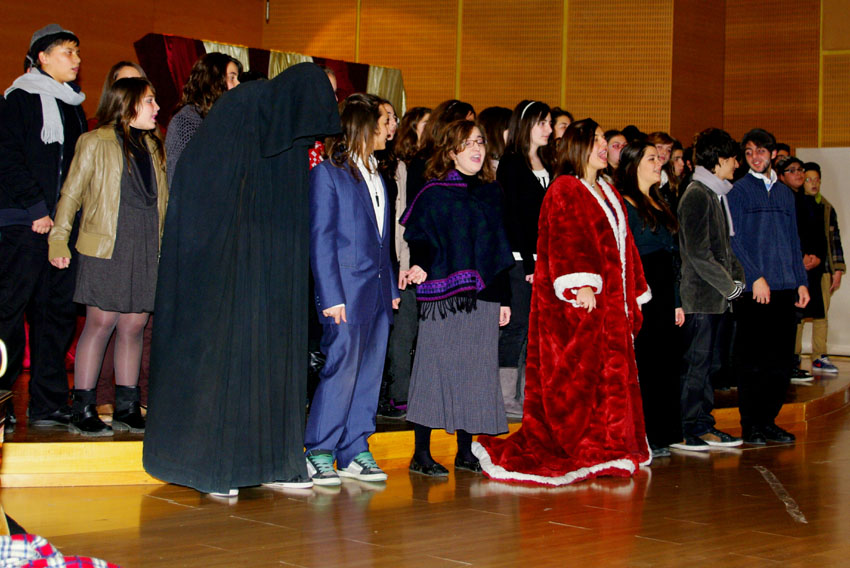 Η βραδιά ξεκίνησε δίνοντας ένα ηχηρό μουσικό μήνυμα αλληλεγγύης και αγάπης μέσα από τις υπέροχες ερμηνείες των μαθητών του Λυκείου και της Γ΄ Γυμνασίου που πλαισίωσαν την παράσταση. Επίσης, μια δυναμική ομάδα καθηγητών μουσικής του σχολείου μας με το Νίκο Έξαρχο στο σενάριο, την ενορχήστρωση και τη μουσική διδασκαλία, τη Μαρία Μεντίζη στη σκηνοθεσία, τη Μελίτα Τσαλουχίδου και το Θάνο Μαρκατόπουλο στη διδασκαλία της χορωδίας και τις Ελένη Αμανατίδου και Ελένη Πετρίδου στην ορχήστρα προσέφεραν στο κοινό ένα ξεχωριστό μουσικό θέαμα υψηλών προδιαγραφών. Τα σκηνικά κοστούμια επιμελήθηκαν η Ελένη Ιωαννίδου και η Βαρβάρα Αθανασιάδου.