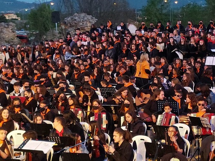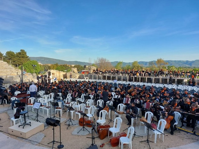 Το αποκορύφωμα του μουσικού αυτού ταξιδιού ήταν η μεγαλειώδης συναυλία που πραγματοποιήθηκε στο κατάμεστο Αρχαίο Θέατρο Φιλίππων, την Κυριακή το βράδυ. Στον επιβλητικό αυτό χώρο, 1200 μαθητές και μαθήτριες από 18 Μουσικά Σχολεία της χώρας και 8 Εκπαιδευτικά Ιδρύματα του Εξωτερικού ερμήνευσαν μοναδικά έργα από την εκκλησιαστική και την παραδοσιακή μας μουσική καθώς και έργα του Μίκη Θεοδωράκη υπό τη δ/νση των Δημήτρη Καρβούνη, Έμης Τσιούρα – Δημοπούλου, Χρυσοβαλάντη Ιωαννίδη, Χρήστου Τσιαμούλη και Σοφίας Νεοχωρίτου. Την ευθύνη της παρουσίασης είχαν οι Γρηγόρης Βαλτινός και Αλέξης Κωστάλας και την επιμέλεια των κειμένων ο Γιώργος Μονεμβασίτης.